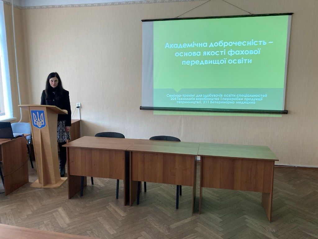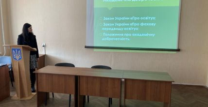 З цією метою 7 лютого 2024 року завідувачка відділення Леся Куденчук провела для здобувачів освіти спеціальності Технологія виробництва і переробки продукції тваринництва семінар-тренінг «Академічна доброчесність – основа якості фахової передвищої освіти».