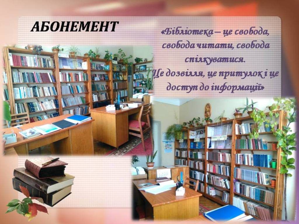 Звичайно, зараз можна завантажити й купити майже будь-яку книгу, але!По-перше, усіх книг не купиш, а в бібліотеці їх можна взяти абсолютнобезкоштовно. А по-друге, в бібліотеці є особлива, чарівна «книжкова» атмосфера,яка об’єднує однодумців.