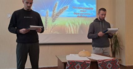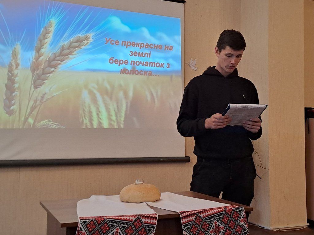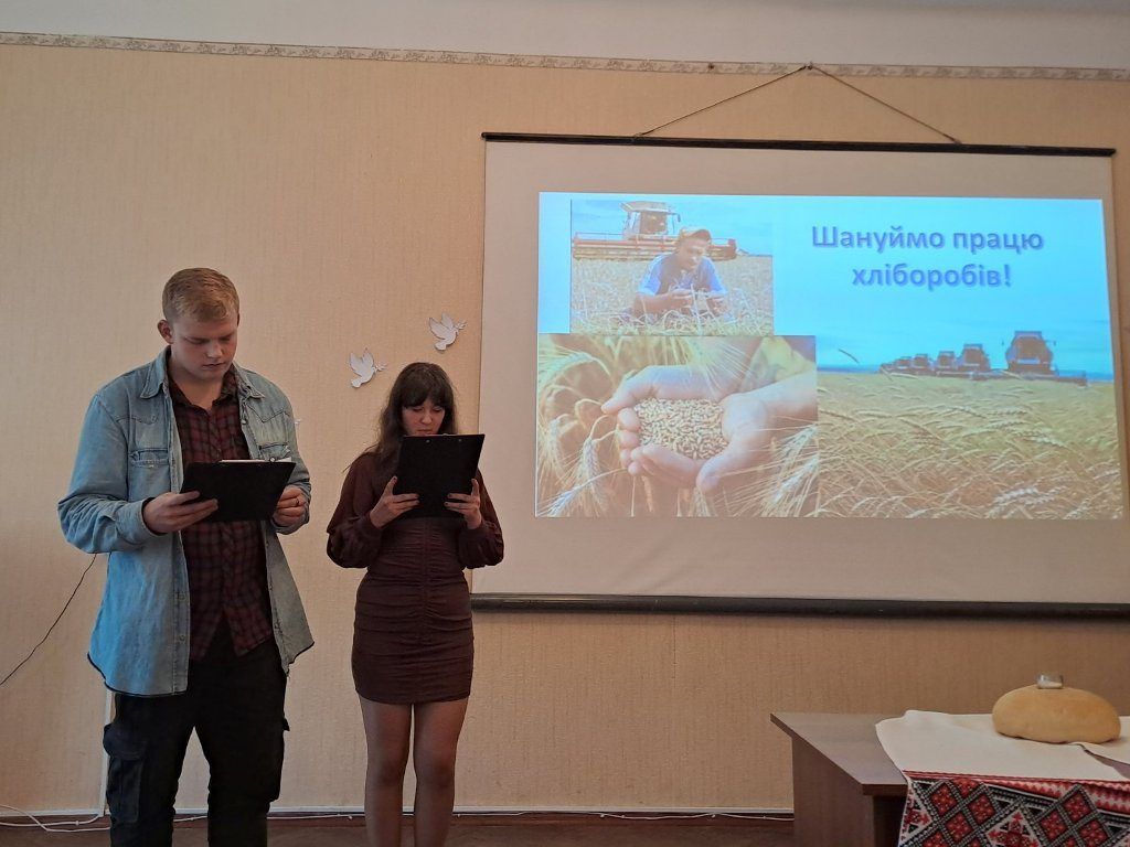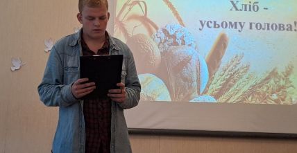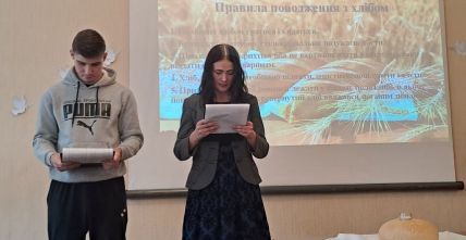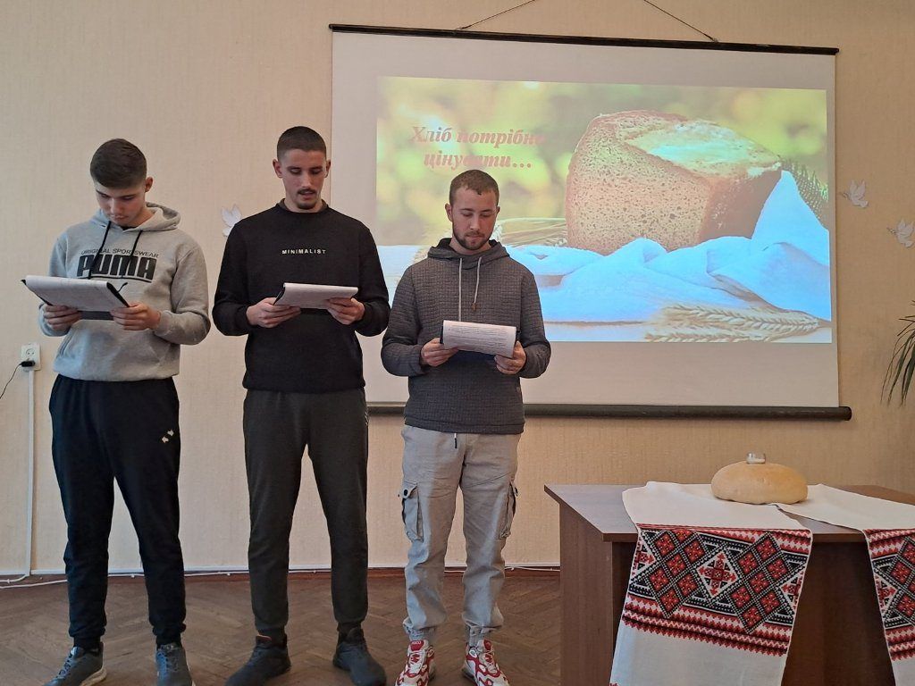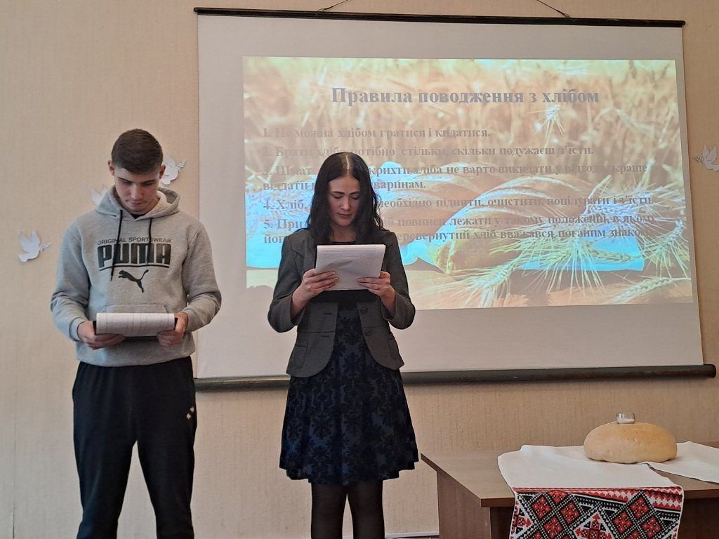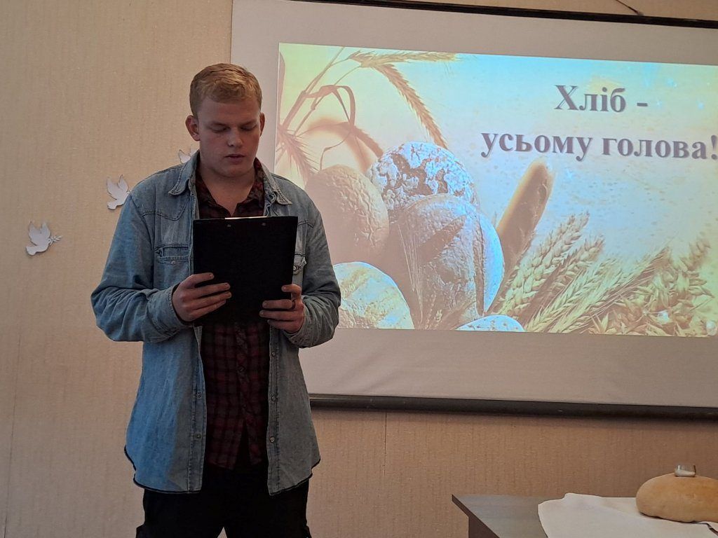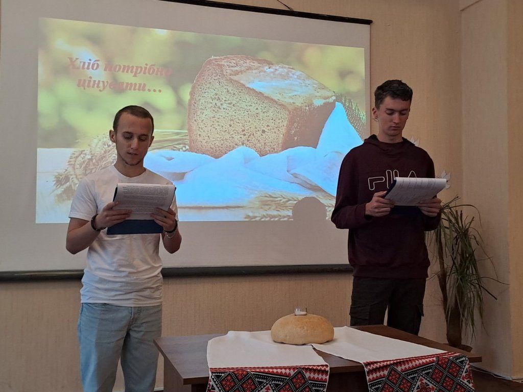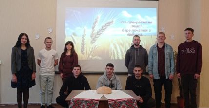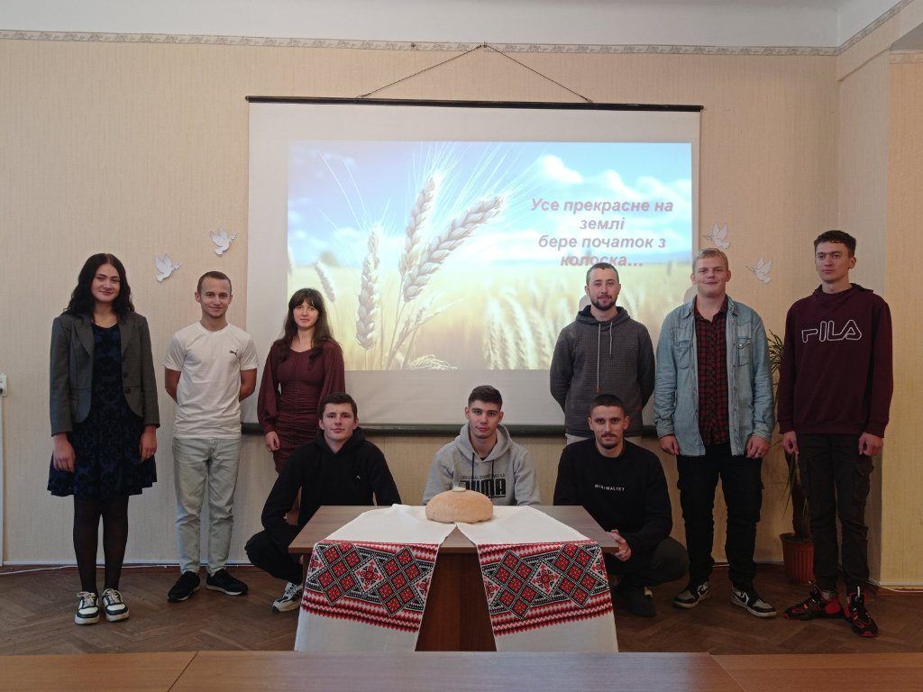“Хліб – усьому голова”, – таку назвумала виховна година, яку провела куратор Ольга Чижевська разом зі студентамигрупи ІІІ тех. Присутні дізналися багато цікавої інформації про хліб як один ізнайдавніших і основних продуктів харчування, познайомились зі шляхом, якийпроходить хлібина, перш ніж потрапити до столу, почули про значення хліба зачасів голодомору та війни, осягнули потребудбайливого ставлення і поваги до зерна, буханця, праці людей. На виховнійгодині було наголошено, що хліб – це одна з найбільших цінностей у житті людини,а хліборобська праця – нелегка і глибоко шанована.