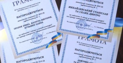 Конкурсна комісія, оглянувши помешканнястудентів, відзначила творчий підхід до їх оформлення і розподілила призовімісця: