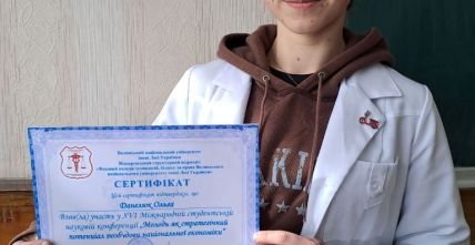 Серед учасниківконференції – студентка ІІІ курсу спеціальності «Ветеринарна медицина» ВСП«Рожищенський фаховий коледж ЛНУВМБ імені С.З.Гжицького» Ольга Данелюк. Дівчинапід керівництвом викладача Оксани Черняк взяла участь у роботі секції «Інформаційні технології та прикладнаматематика», узагальнивши результати дослідження на тему: «Використання штучногоінтелекту у ветеринарії». Тези доповіді увійшли до традиційного збірника, а студентканагороджена сертифікатом.