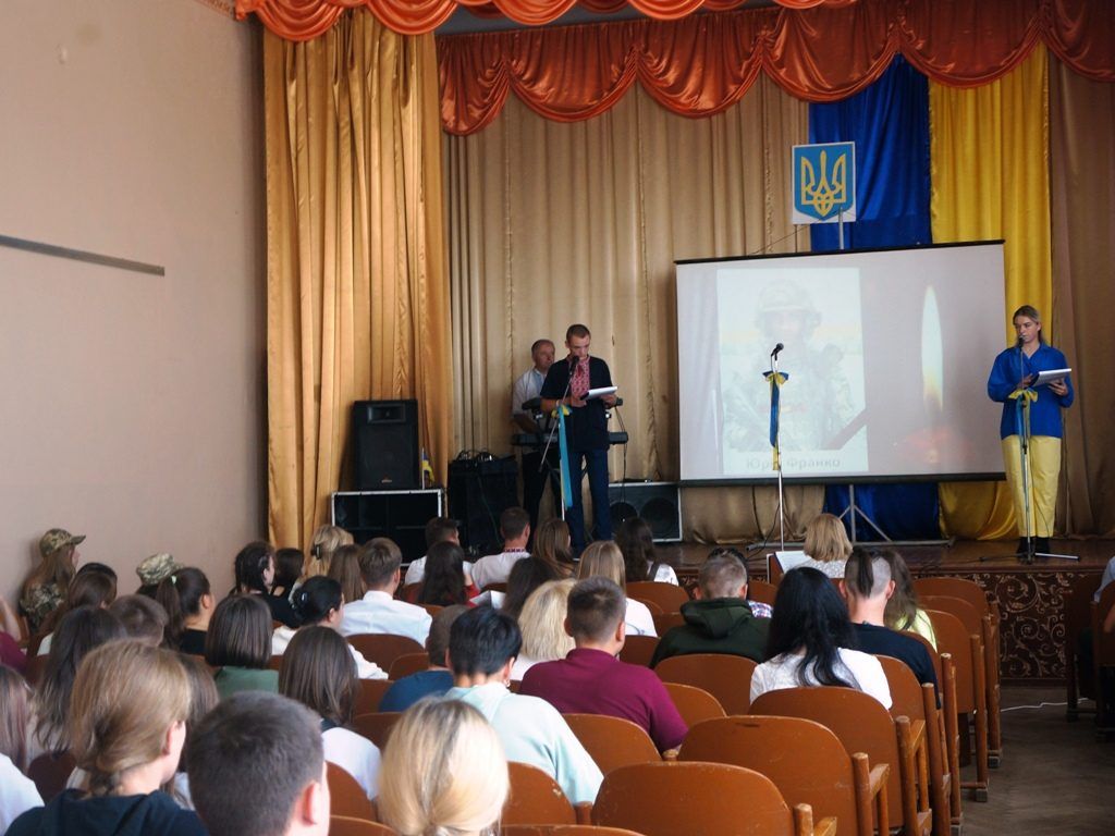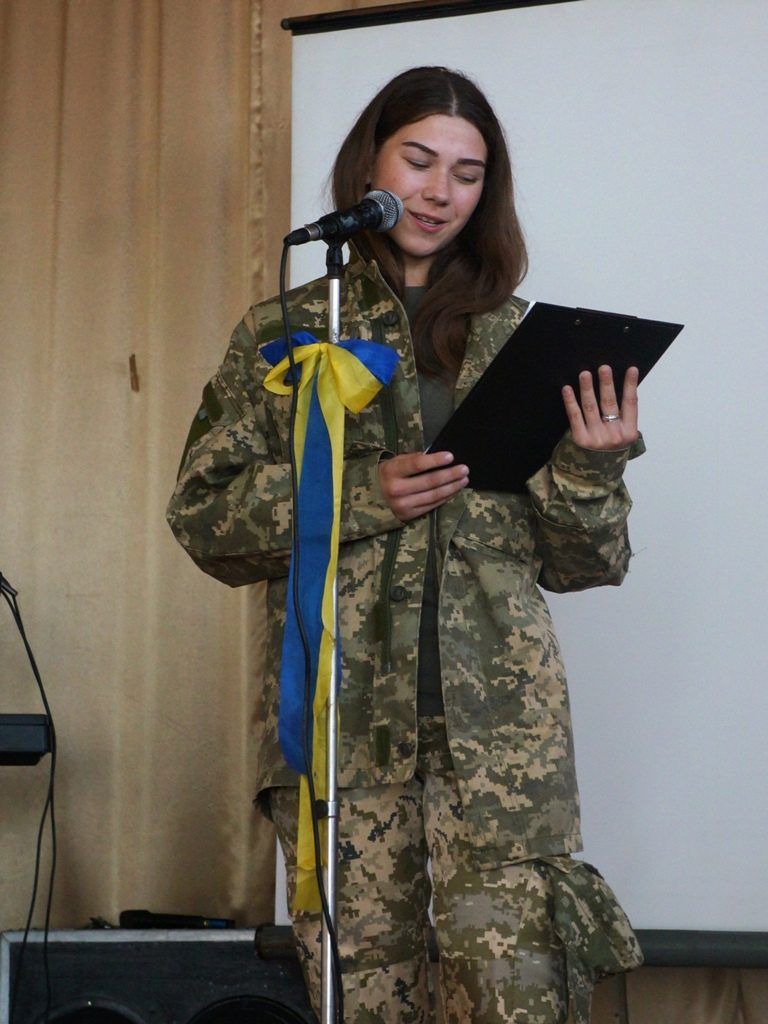 Напередодні свята у Рожищенськомуфаховому колежі ЛНУВМБ імені С.З.Гжицького відбувся патріотичний захід «Очіянголів у формі ЗСУ». Саменашим воїнам – мудрим, мужнім, безстрашним, незламним – присвячувався захід. Хвилиноюмовчання вшанували пам’ять випускників коледжу, які загинули у боротьбі за мирі спокій у нашій країні. Зі сцени линули щирі слова привітань і подяки героям,звучали поетичні рядки й українська патріотична пісня від студентів тахудожнього керівника Валентина Омельчука. Приємною несподіванкою став виступвипускника коледжу, а нині – учасника Волинського народного хору АртемаСтепанюка.
