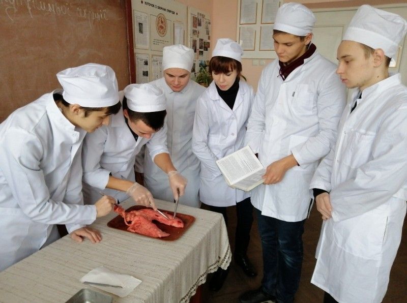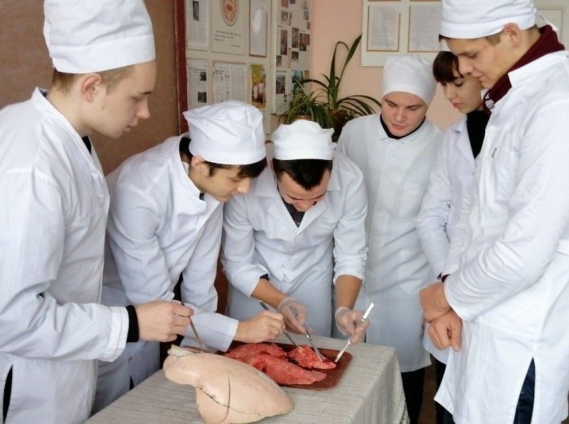 На занятті анатоміїі фізіології сільськогосподарськихтварин студенти групи ІІ спецвет вивчаютьбудову органів дихання свині. Підкерівництвом викладача Інни ЄвгеніївниПетрук студенти провели розтин легеньз метою вивчення будови трахеї,бронхіального та альвеолярного дерева.Знання будови органів дихання дадутьзмогу вивчати і захворювання цих органів.