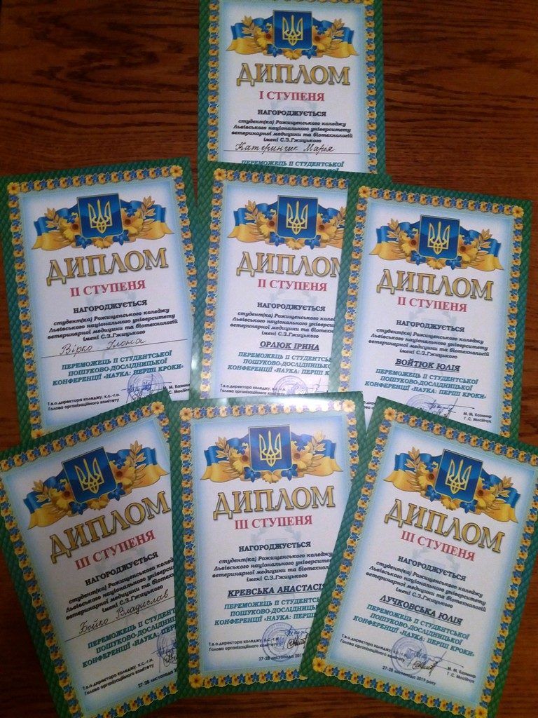 Цьогоріч доконференції долучилися 26 студентів,науковими керівниками яких стали 24викладачі коледжу. У дослідженнях булипідняті актуальні проблеми у галузіветеринарної медицини, технологіївиробництва та переробки продукціїтваринництва, економіки, математичнихта історичних наук. Усі учасникиконференції отримали сертифікати, апереможці – нагороджені дипломами: