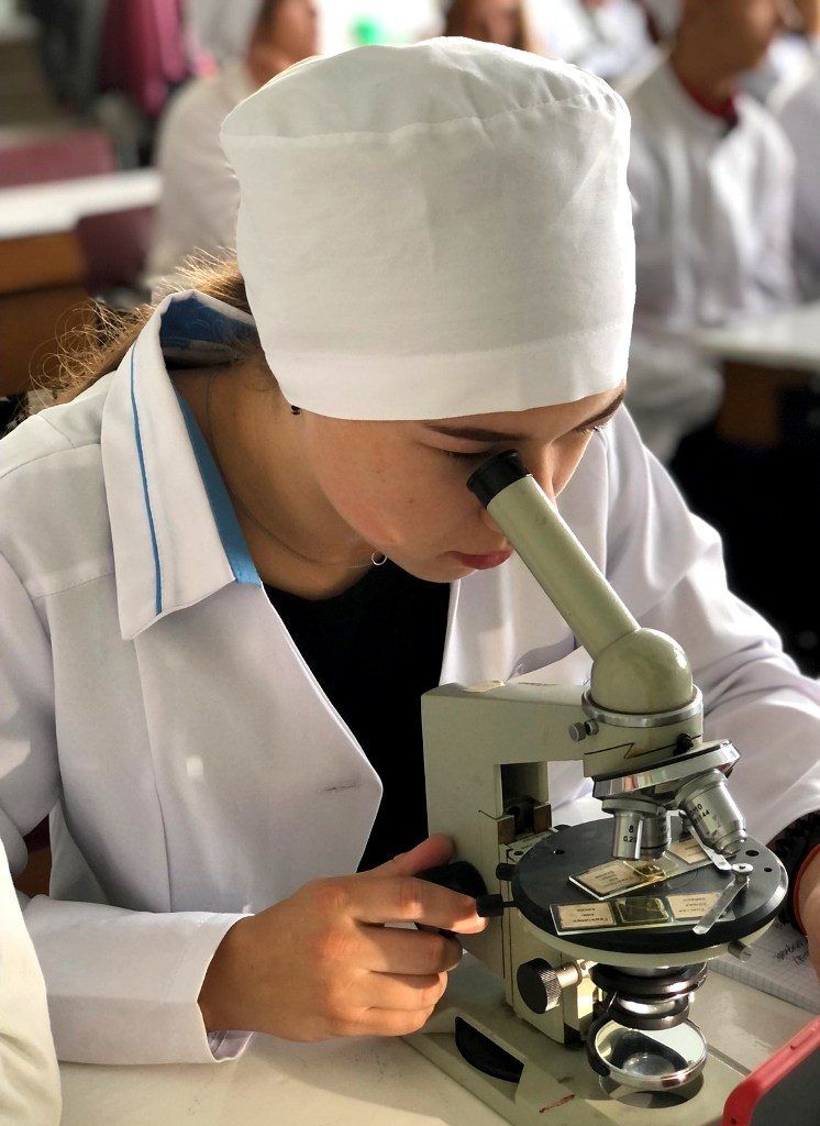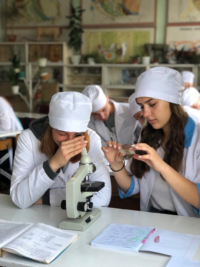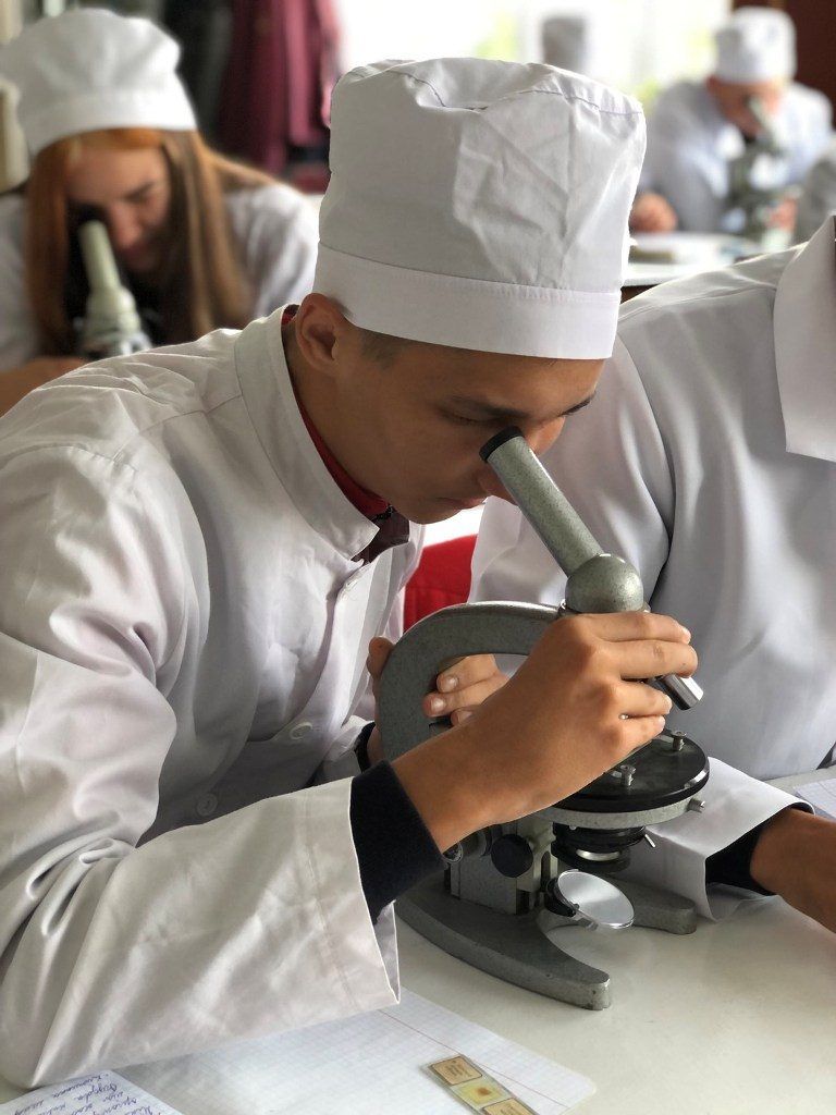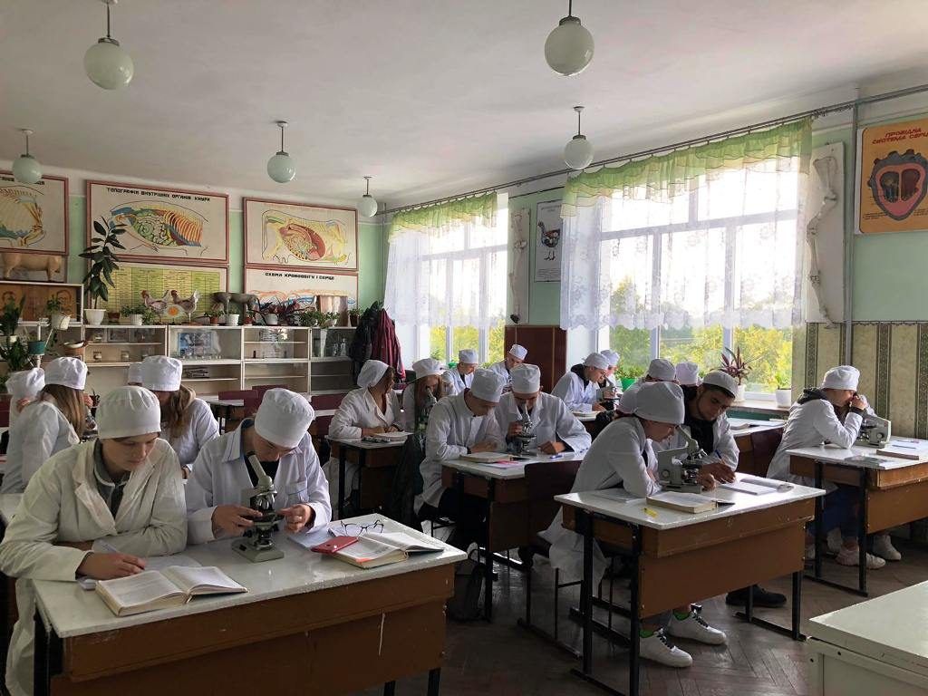 7 вересня 2021 року на практичному занятті з дисципліни «Анатомія і фізіологія сільськогосподарських тварин» студенти ІІ курсу спеціальності «Ветеринарна медицина» під керівництвом викладача спецдисциплін Інни Євгеніївни Петрук опановували правила роботи з мікроскопом, досліджуючи гістологічні препарати м’язової та хрящової тканини, паренхіматозних органів (нирки, печінки, селезінки, легень). Ці знання майбутнім спеціалістам у галузі ветеринарної медицини знадобляться при роботі у ветеринарних лабораторіях, при проведенні ветеринарно-санітарної експертизи продуктів харчування на ринках, при дослідженні збудників хвороб тварин тощо.