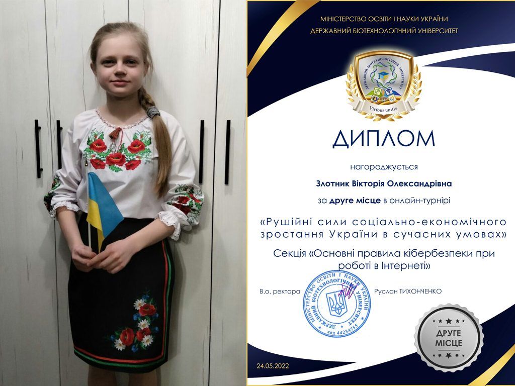 –Диплом за друге місце отримала студентка групи І вет Злотник Вікторія (секція «Основніправила кібербезпеки при роботі в Інтернеті», керівник – Оксана АнатоліївнаЧерняк);