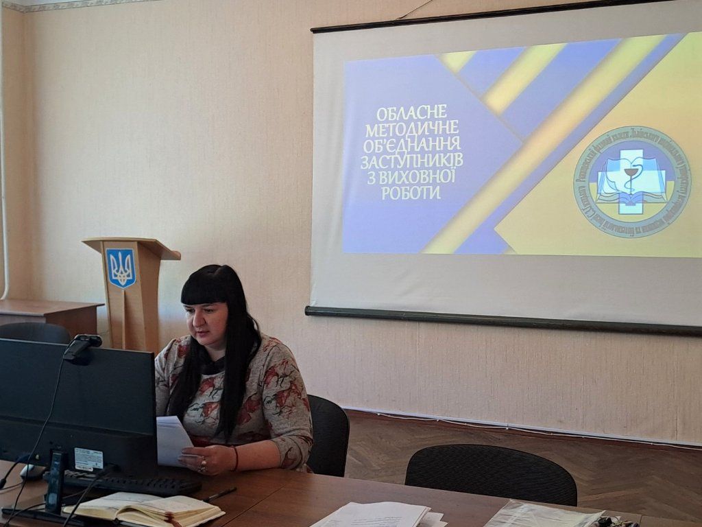 Відповідальна за виховну роботу коледжу Оксана Черняк виступила з доповіддю «Діяльнісний підхід щодо реалізації Концепції національно-патріотичного виховання в закладі освіти». Про стратегічні аспекти виховної роботи куратора групи в системі підготовки здобувачів фахової передвищої освіти за сучасних умов говорила викладачка спеціальних дисциплін, куратор групи Олена Заяць. У рамках методоб’єднання студентським колективом коледжу було представлено народознавчий відеопроєкт «Великдень всіх нас на гостини просить».