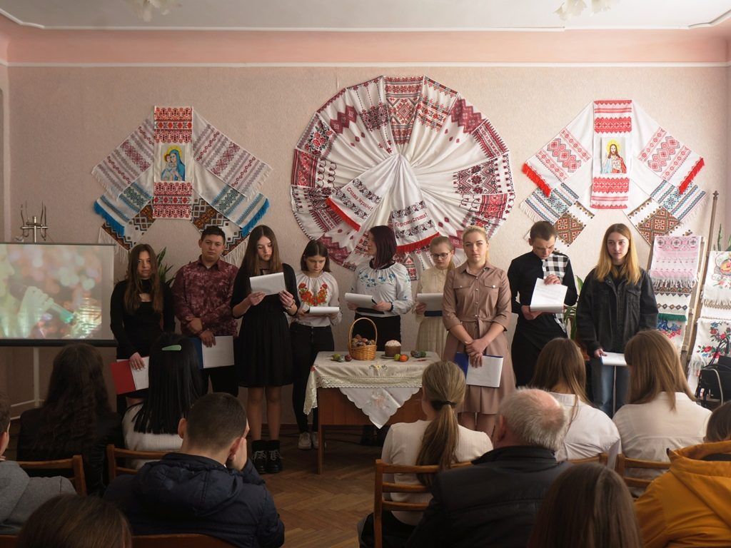 Про історію Великодня,традиції його святкування, прикмети та обряди розповідали студенти ІІ курсуспеціальності «Ветеринарна медицина» 20 квітня 2023 року на відкритій виховнійгодині «Великдень всіх нас на гостини кличе». Читали поезію, дивилися тематичневідео, співали пісень – славили Ісуса Христа.Воскресіння Господнє в усі часи давало людямнаснагу вірити, любити, прощати. Щоб зупинити зло, нам треба перемінитисясамим, бо саме з кожного з нас спитається: ”А що ти зробив?” Тож у ці величнісвяткові дні щиро зичимо, щоби Великоднєсвітло потрапило в кожну домівку. Бажаємо, щоби воскреслий Ісус перемінивненависть на любов, смерть на життя, війну на мир! ХристосВоскрес!