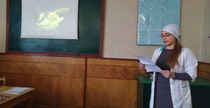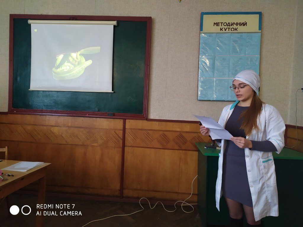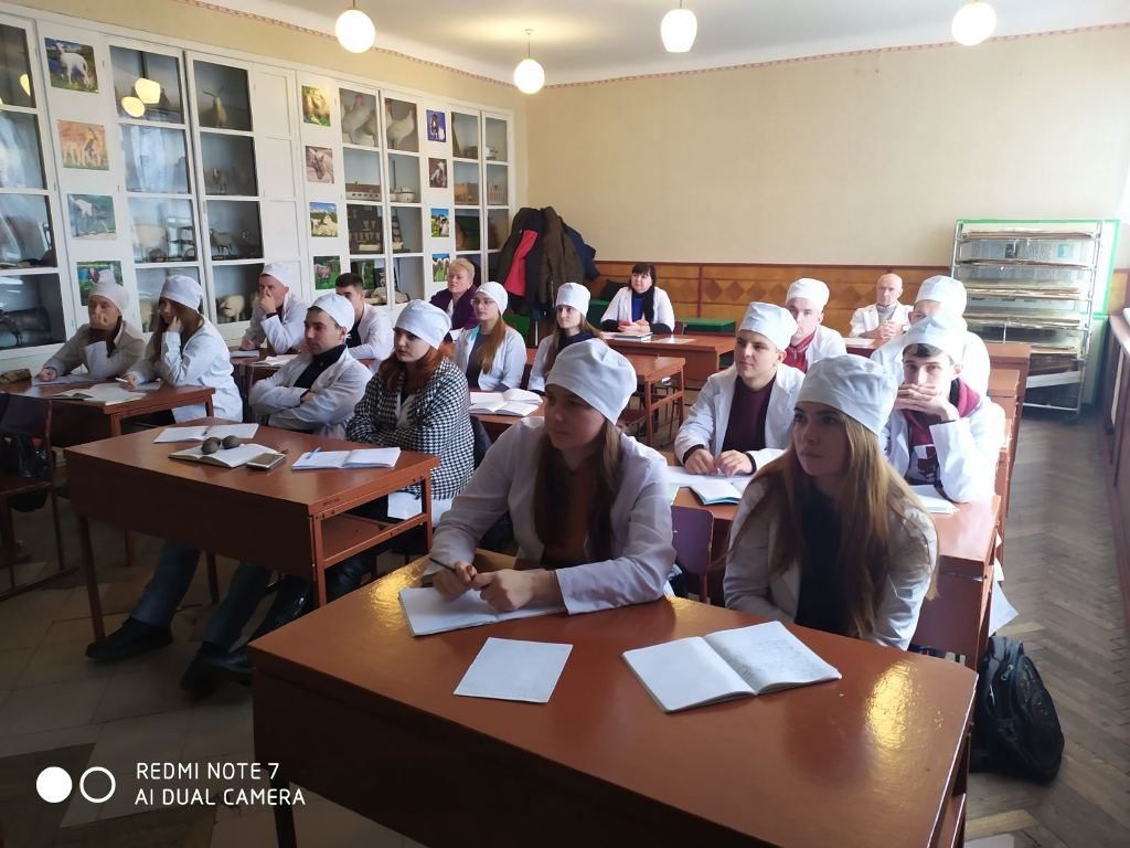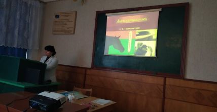 12 грудня 2019 рокуу групі ІVспецвет відбулося відкрите заняття здисципліни «Внутрішні незаразні хворобитварин» на тему «Хвороби шлунка ікишечнику з явищами кольок». Заняттяпроводила викладач спецдисциплінЄвгенія Володимирівна Ющак. Упродовжзаняття студенти ознайомилися з поняттямсиндрому кольок, вивчили етіологію,патогенез, клінічні ознаки,патолого-анатомічні зміни, діагностику,перебіг, прогноз, лікування і профілактикугострого розширення шлунка тварин.