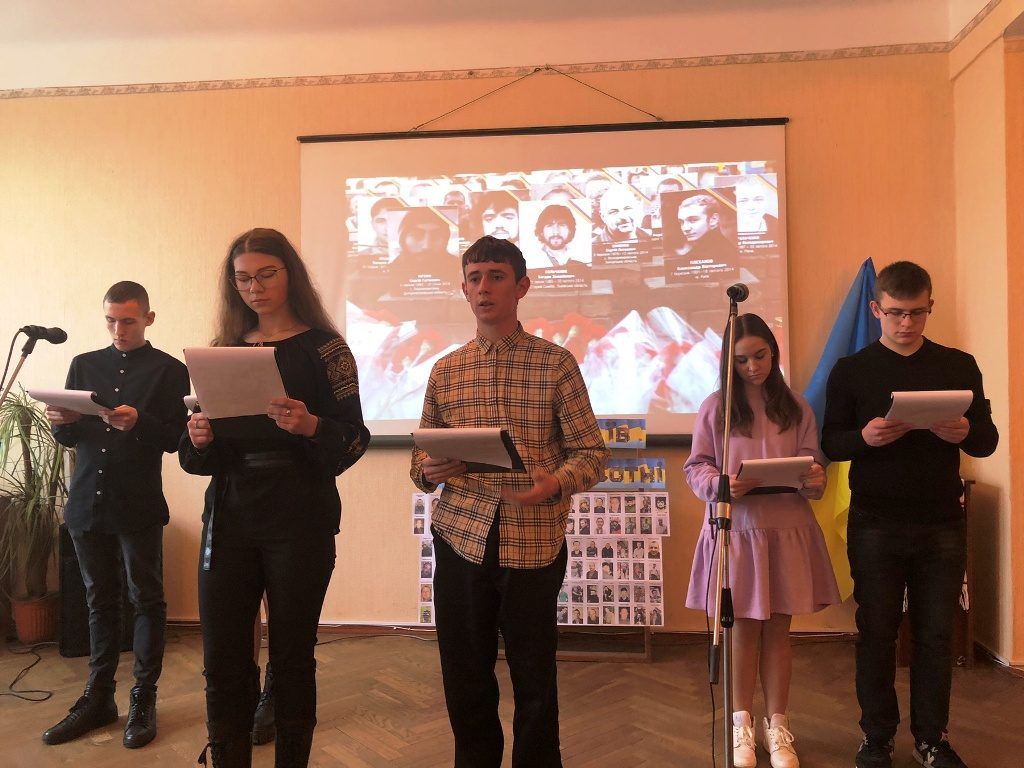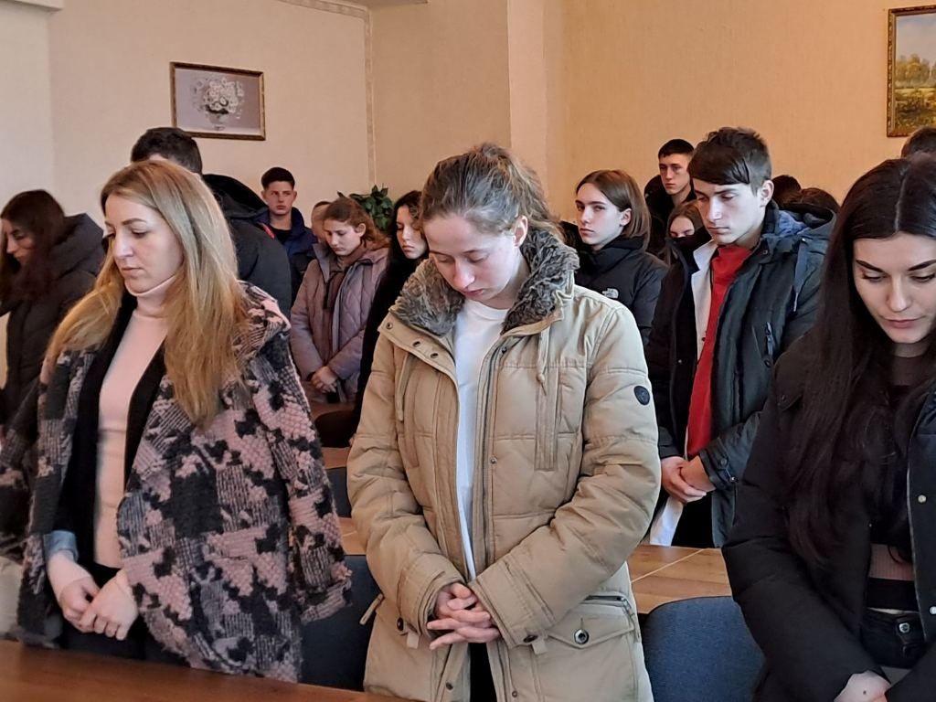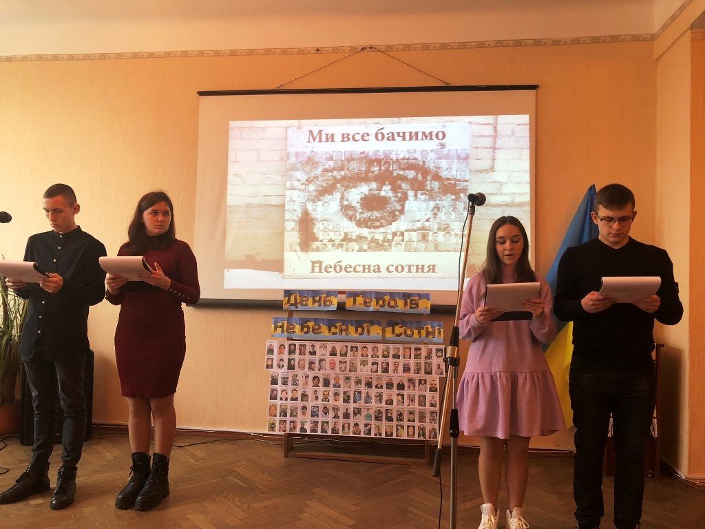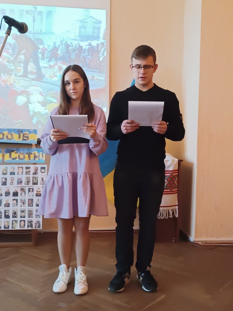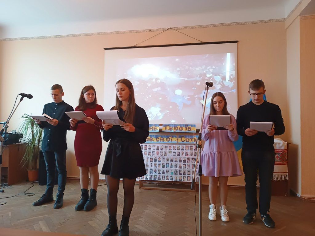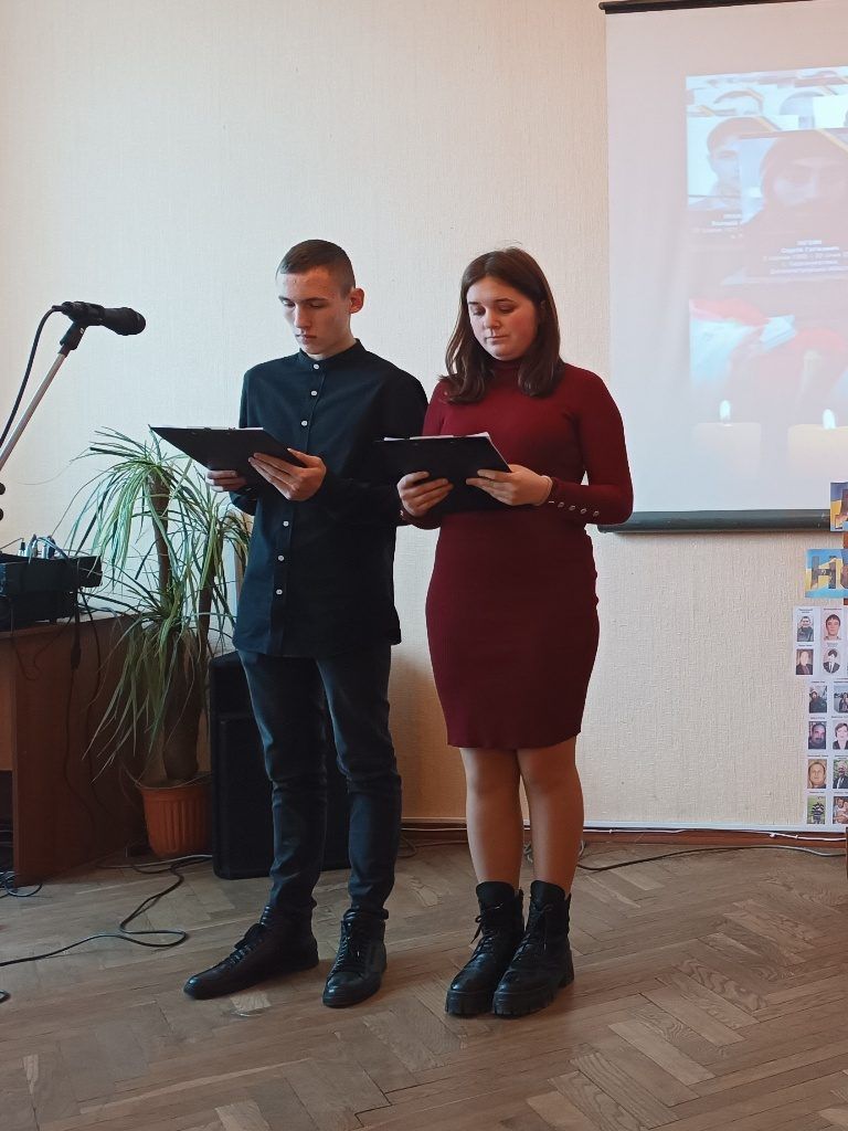 З метоювшанування пам’яті Героїв Небесної Сотні 22 лютого 2023 року здобувачі освітита педагоги Рожищенського фахового коледжу ЛНУВМБ імені С.З.Гжицького зібралисьна відкриту виховну годину під гаслом «Вони помирали, щоб жила Україна…»Студенти ІІІ курсу спеціальності «Ветеринарна медицина» згадали трагічні дніборотьби, провели паралелі з подіями, що відбуваються в Україні сьогодні,вшанували пам’ять усіх загиблих хвилиною мовчання.