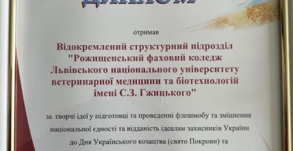 козацтва (свято Покрови) та Дня захисників і захисниць України «Ми – нащадки козацької слави». Цьогоріч Рожищенський фаховий коледж ЛНУВМБ імені С.З.Гжицького взяв участь у флешмобі єдності: декламування поетичних та прозових творів відомих авторів минулого та