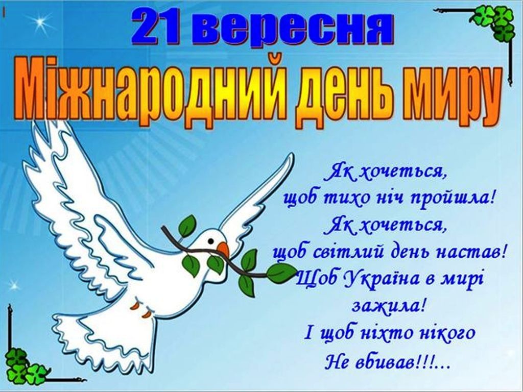 21 вересня у всьому світі відзначають Міжнародний день миру.