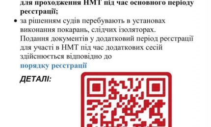 УВАГА. Упродовж 10-15 травня 2024 року є можливість ЗАРЕЄСТРУВАТИСЯ НМТ