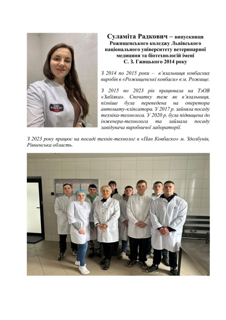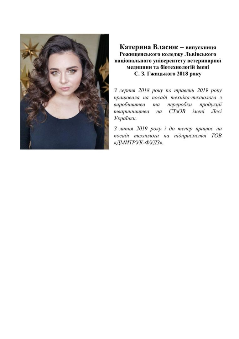 Наші випускники за ОПП Технологія виробництва і переробки продукції тваринництва