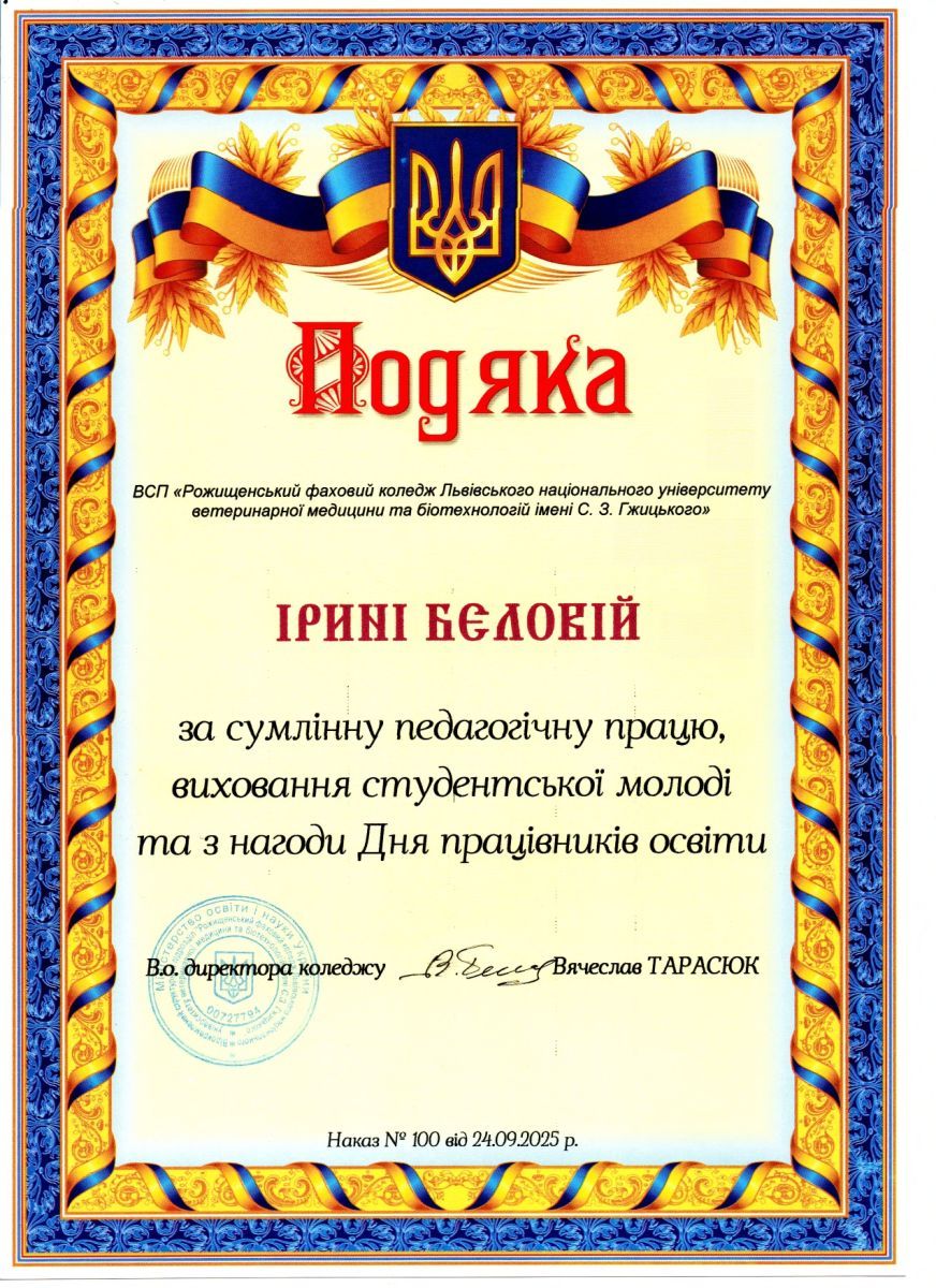 Відокремлений структурний підрозділ «Рожищенський фаховий коледж ЛНУВМБ імені С.З.Гжицького»