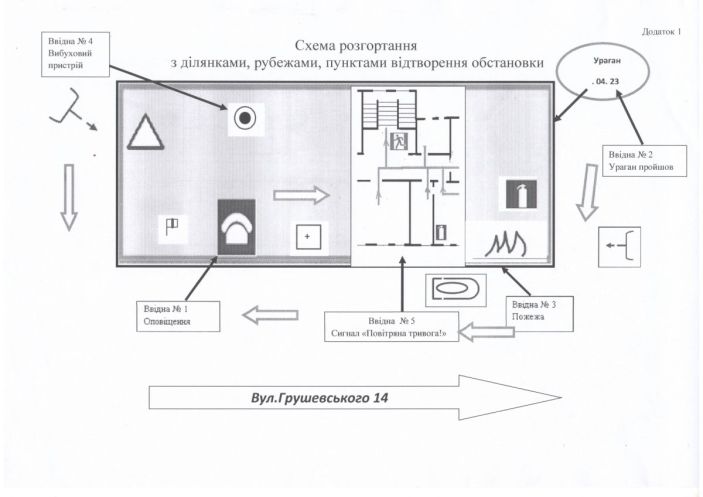 Схема розгортання з ділянками, рубежами, пунктами відтворення обстановки